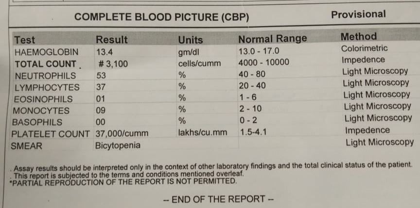 60 year old male presented to the OPD with fever and giddiness since 3 days.